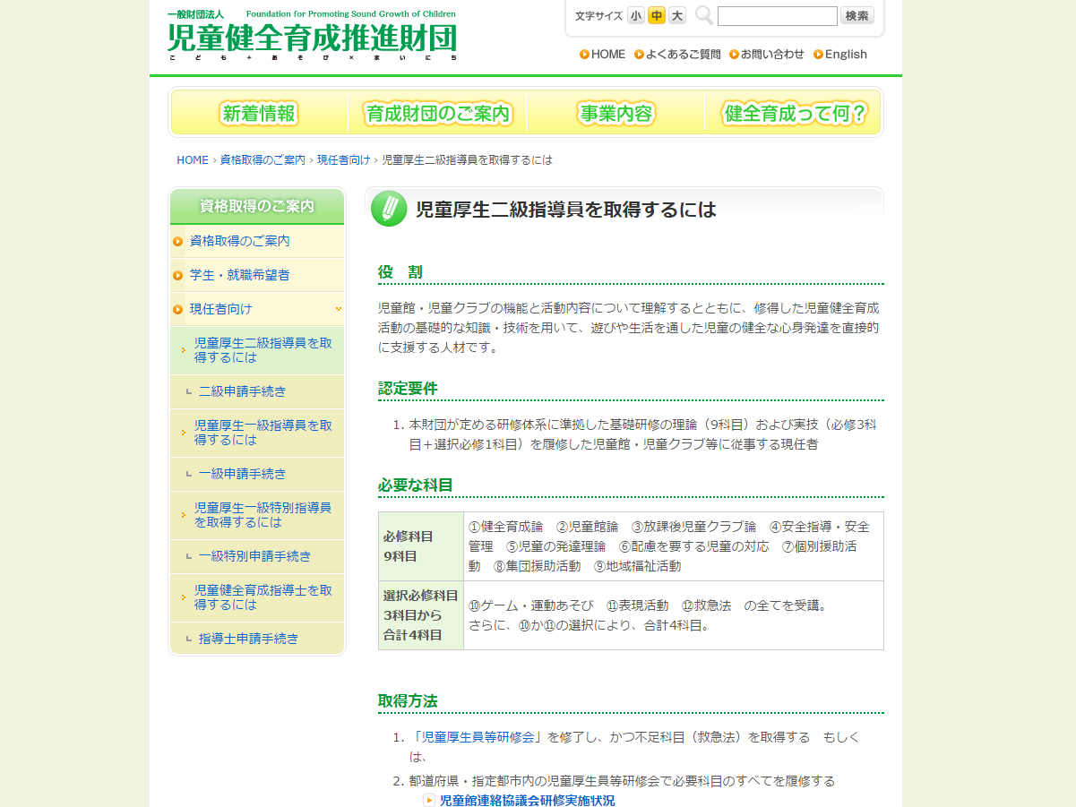資格を取得することは難しくなく、それまで保育士や学校教諭の免許がないという人であっても児童健全育成推進財団の行う研修会を受講することにより受けることが可能です。